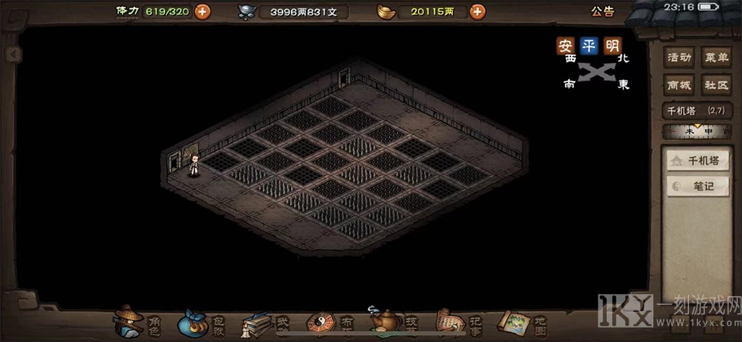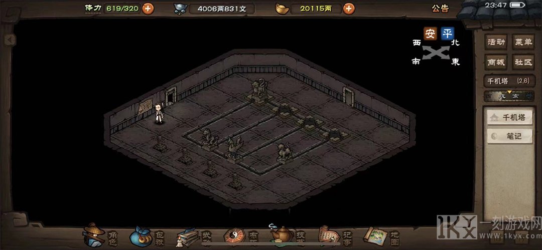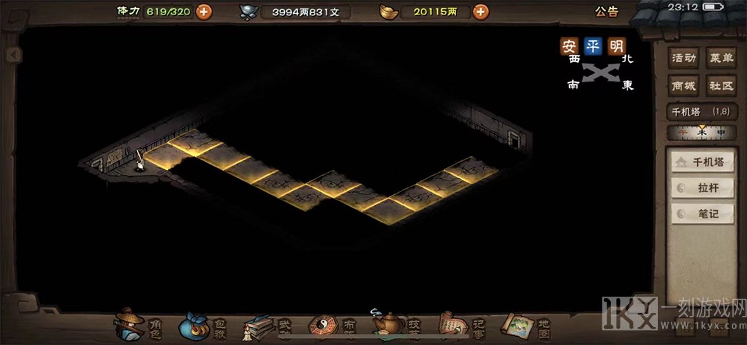 直接从南岭进入密室,在(10,12)启动拉杆开启机关