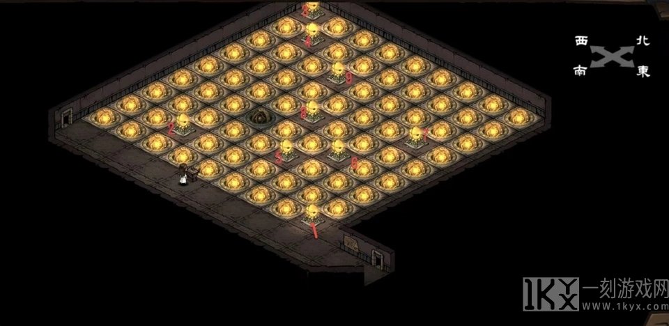不能踩到亮灯的格子,并且当角色经过一个格子后,该格子才会发亮。初始会有一些发亮的格子,相当于障碍物。同样类似于一笔画。