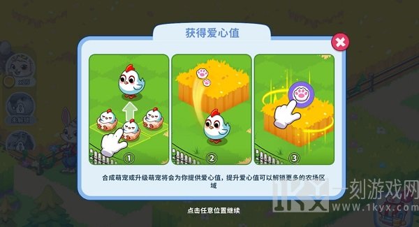 2、合成萌宠或升级萌宠将会为你提供爱心值,提升爱心值可以解锁更多的农场区域