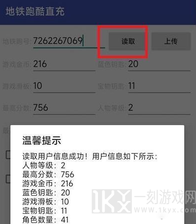 4、第四步点击【读取】,这时就会读取用户信息,用户的信息会显示出来。