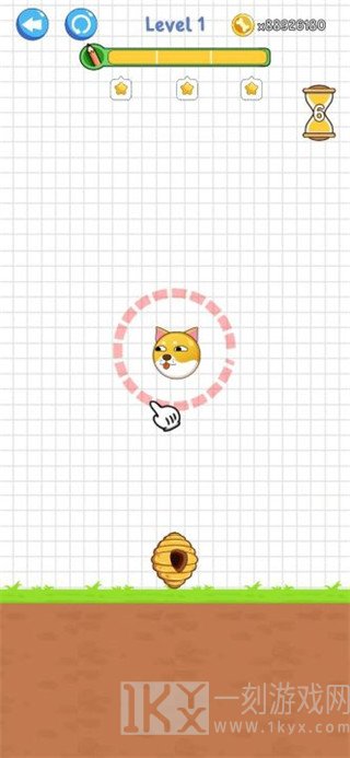 4、可爱的狗狗免遭蜜蜂的叮咬,利用手指为他画上一个保护圈,让蜜蜂接触不到狗头就能成功,魔性十足的挑战过程,游戏的会相当的有意思,后期的关卡也会很多样,新奇的挑战内容,不会无聊。