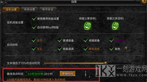 如果无法一直在线游玩,游戏中内设有离线挂机功能,可以通过钻石商城购买离线泡点药剂增加离线挂机时间,一个药剂增加5个小时,最高可累计20个小时离线挂机时间。