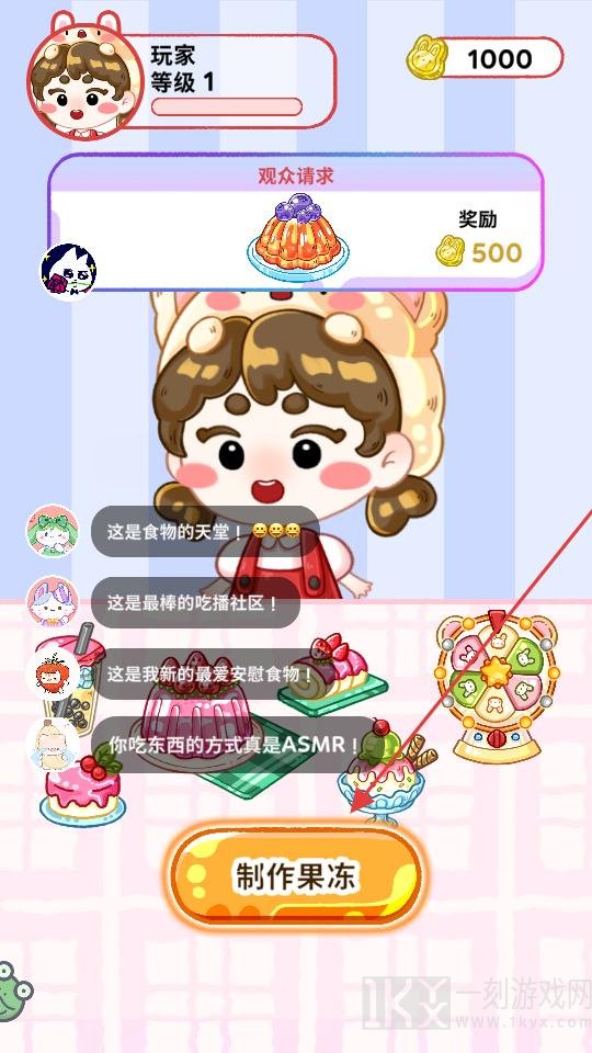 2、直播时根据观众请求,点击制作果冻按钮,进入果冻制作环节,此时界面会展示制作果冻所需的材料和工具。