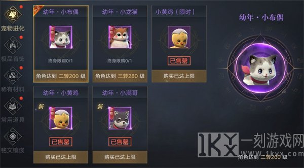 进阶方式:获取对应宠物的进阶材料,以及一定数量的压棺玄石、千年陨玉和鸡血石后进化
