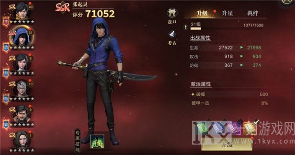 在伙伴养成界面中,可以看到该角色的等级经验、出战属性、激活属性、以及其专属技能,点击图标后可以确认技能效果。