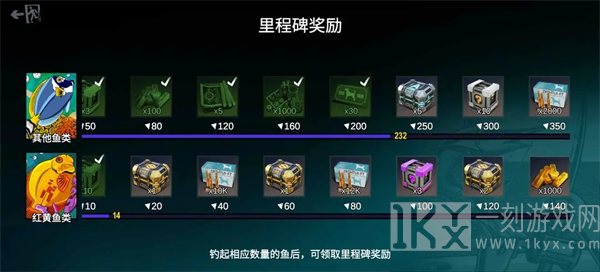 调整了里程碑奖励规则,不再限定永恒白垩地图,而是所有地图只要钓鱼即可按照数量获得相应档位奖励。