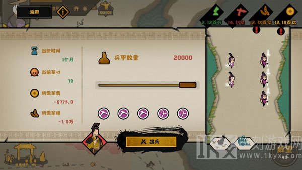 挂机发育一波后,点上虎符和枪兵科技树,如果有钱可以再点徒手的军阵加一波人数,科技点不足的话可以点民生里的算学和草药,政治里的铸币(貌似加)