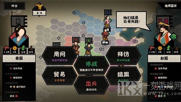 选择打秦国,你只需要用枪兵推平鬼方(全胡骑)和义渠(也是全胡骑),楚国同理用枪兵推平(如果没被瓜分的话)而此时赵国大概率已经雄霸北方,我们就可以割韭菜了,赵国习惯两骑三剑,我们直接用枪兵推平,这时候我们也就雄踞一方,只需挂机发育点点军事民生就可平推了