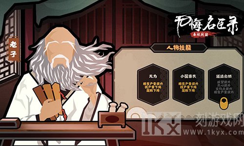 老子在无悔入华夏是归属于贤者类的名臣,他拥有三个技能:无为、小国寡民、道法自然,这三个技能升级后均能为粮食产量带来提升,有了粮食百姓才可以安居乐业,才能稳定民心。这在国家的发展前期可打好一定基础的哦~