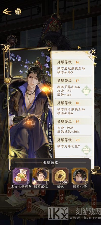 灵犀值升级也是有奖励的,灵犀值最高可以提升到20级,每达到一定等级,我们将获得角色碎片、礼物和金币作为奖励。同时,达到最高级别的灵犀值还将获得角色的心语,要知道专属心语是非常难抽,极其看运气。