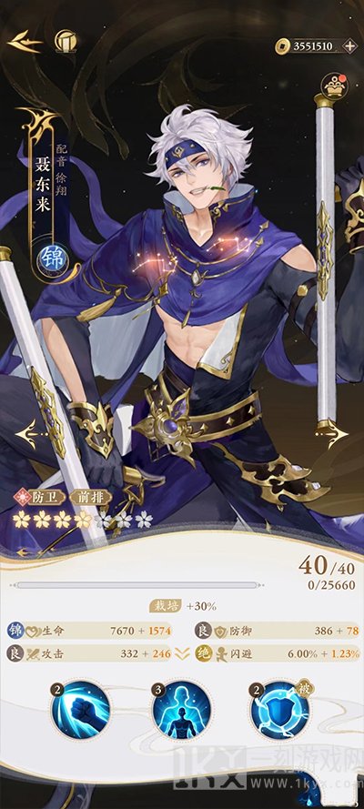 聂东来的普攻具备反伤效果,使敌人受到反弹的伤害。大招金刚护体可以提供强大的护盾,增加自身的生存能力。被动技能疾风闪电则为全体队友提供防御提升,加强整个队伍的防守。