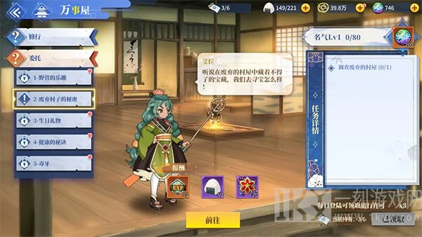 人物角色等级提升到21级时,开启【万事屋】,前期建议大家最后选择带有体力的任务,先快速提升人物等级为先。