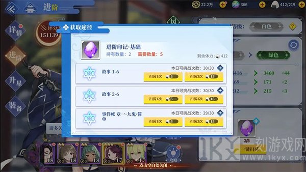 在进阶材料不足时,可通过点击材料并使用一件扫荡快速进行获取。同时,体力值的管理也至关重要,应合理分配于主线推图和武将进阶之间。