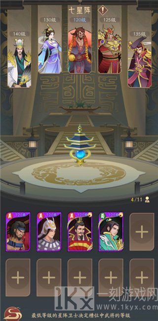 在解锁七星阵后,系统会自动把我们当前身上等级最高的5个武将选做为星阵卫士。剩下未选中的武将都可以放置到七星阵中,放置后的武将其等级将自动同步到5个星阵卫士中的最低等级。