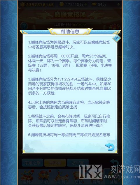 巅峰竞技场为跨服PK玩法,一周为一个赛季。