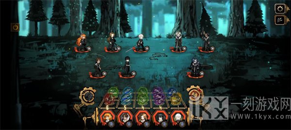 这里的共鸣不是仅限一个角色使用同属性卡片时能触发共鸣,而是相邻角色使用同属性卡片时,也可以触发共鸣,一般认为共鸣越多越好然后屏幕右上角有7种资源使用属性,技能后会增加资源,这些资源达到后可以触发左边的BUF。