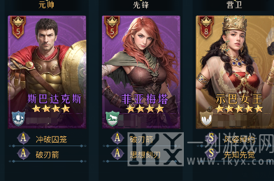 这套阵容拥有出色的近战伤害能力,凯撒大帝本身拥有极高的输出面板属性,搭配上自身的独裁能够使自身获得无畏的效果,并且能够对控制效果中的敌人额外造成高额的伤害加成,搭配上伊丽莎白和约瑟芬的辅助能够起到一骑当千的效果,非常的强势。
