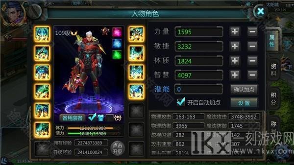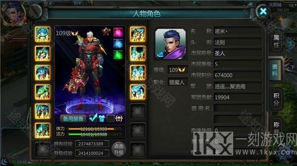 3、在人物面板右侧可以切换查看条目,查看属性,资料,积分,称号。
