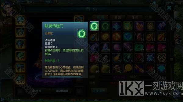 1、点击右下角背包图标可以打开物品背包,背包界面右侧切换不同编号的背包。