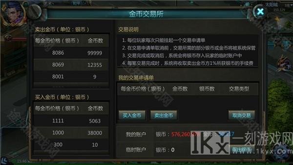 4、在物品背包中开可以选择兑换银币进入金币交易所,进行买卖金币。