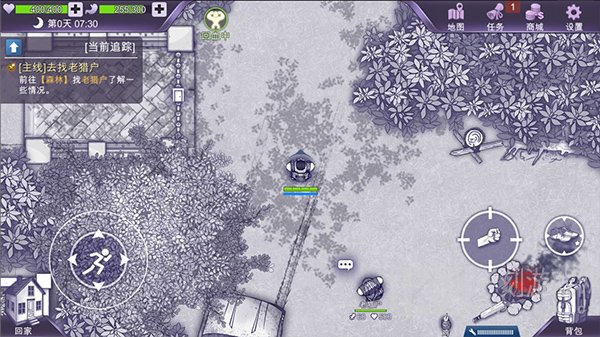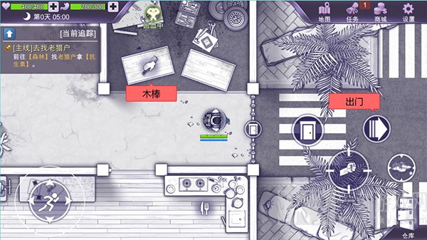 出门前记得捡上【木棒】,这个时候先不要管后院的鸡和木头,直接出门去森林找老猎户。