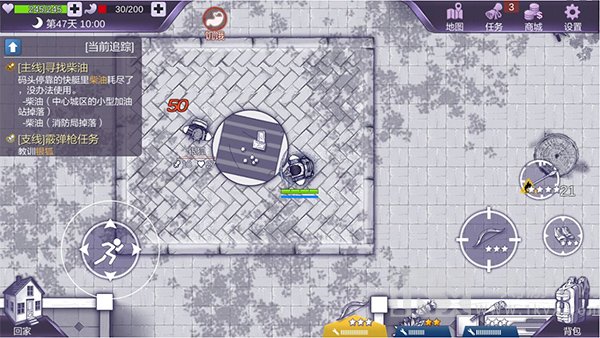 大部分的末日生存游戏都喜欢采用回合制的战斗方式,但游戏到了最后都变成了数值的比拼,毫无操作性可言。但《阿瑞斯病毒》全局采用俯视的上帝视角,双摇杆的移动操作系统,左边摇杆负责移动,右边负责瞄准和蓄力,不再是传统的的生存回合制。战斗时,需留心观察敌人的出招方式和频率,在合适的时机进行反制击杀,纯莽夫操作的话难度将大大提高!同时玩家的灵活走位也可以大大减少弹药损耗,毕竟蓄力攻击也是能一边移动一边攻击的,无伤成就你值得拥有!而在怪物设计上,每一只怪物都有它不同的弱点属性与攻击方式,如游戏初期遇到的龟王BOSS,使用配备的弓箭进行攻击伤害并不显著,直到玩家制作出了铁锤头才能较为轻松地将其击杀,这样相克依存的设计无疑是大大的提高了末日生存游戏的挑战性和耐玩度。