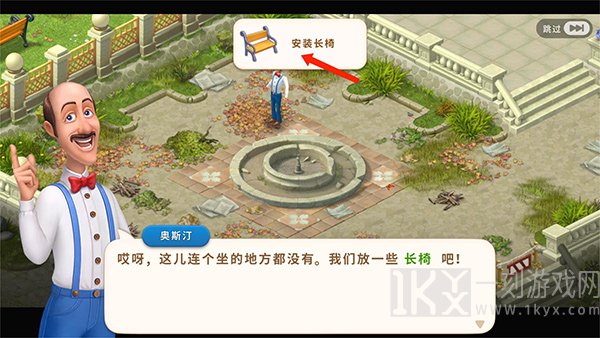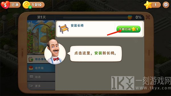 2、出现游戏任务了,我们需要在公园安装长椅,继续点击屏幕,