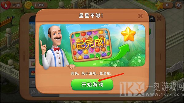 6、每次完成任务都需要消化星星,我们可以通过玩小游戏的方式获得星星,选择【开始游戏】选项;
