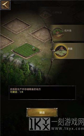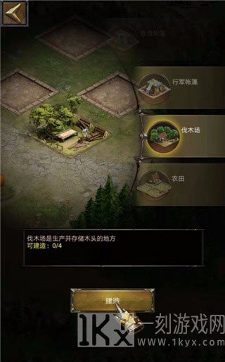 1、伐木场可以生产木材并储存木头的地方,升级伐木场可以获得更高的生产量,点击建造,如图所示