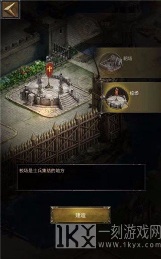 7、继续建造建筑,校场是士兵集结的地方,点击前往建造,另外升级校场可以提高征数量上限,如图所示