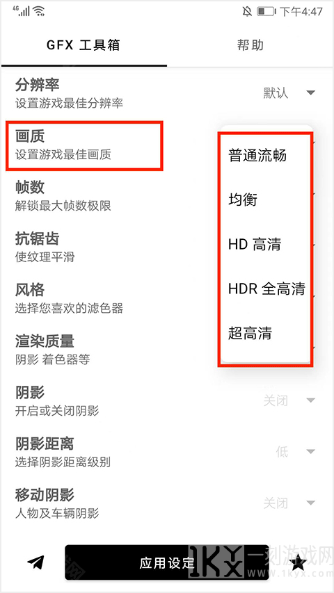 4、可看到包括普通流畅、均衡、HD高清、HDR全高清和超高清选项,越往下说明效果越好,用户可根据手机配置情况自行选择,