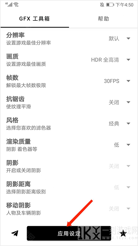 2、往下滑动屏幕,包括分辨率、画质、帧数、抗锯齿、风格、渲染质量、阴影、阴影距离、移动阴影、纹理质量、效果质量、改善效果等等选项可以选择修改,