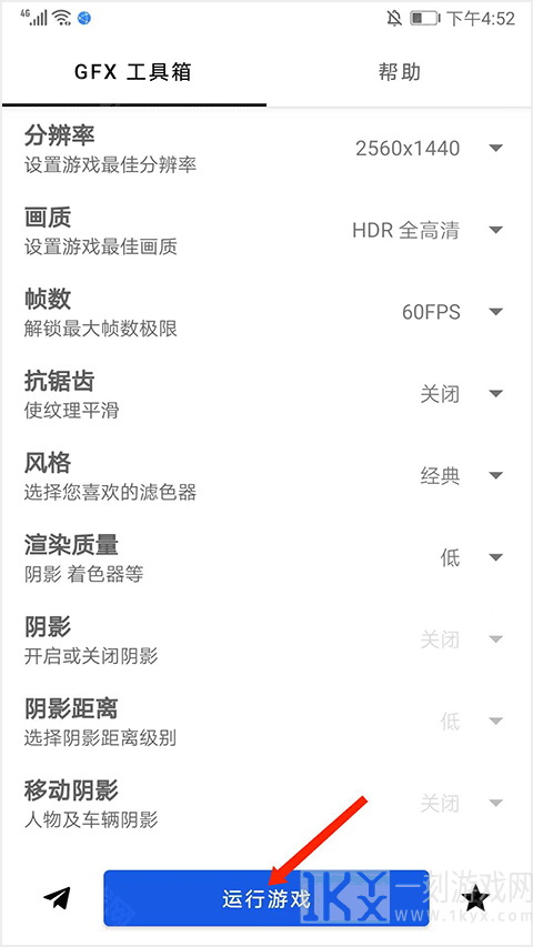 6、最后我们选择【运行游戏】选项,即可开始不一样的游戏画质体验了,以上就是gfx工具箱的用法了。
