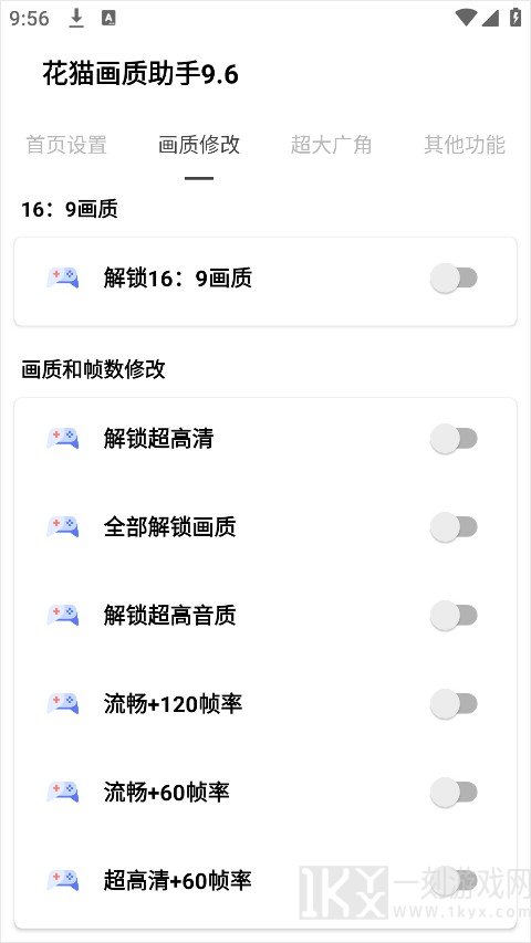 2、在画质修改选项中,用户可以解锁16:9画质、超高清画质,解锁所有画质选项,并且还可以开启流畅120帧+60帧以及超高清60帧的优化功能。