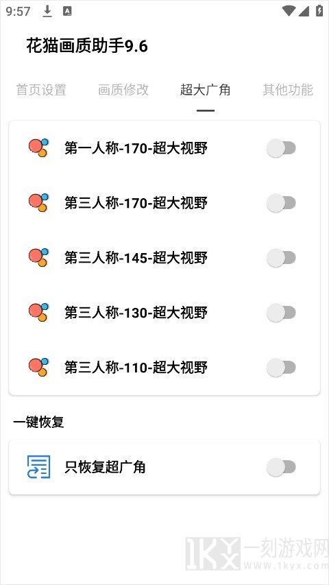 3、选择超大视角功能,玩家能够自定义第一人称或第三人称的视野范围,分别支持110、130、145、170度等超广角设置,提供更广阔的游戏视野。