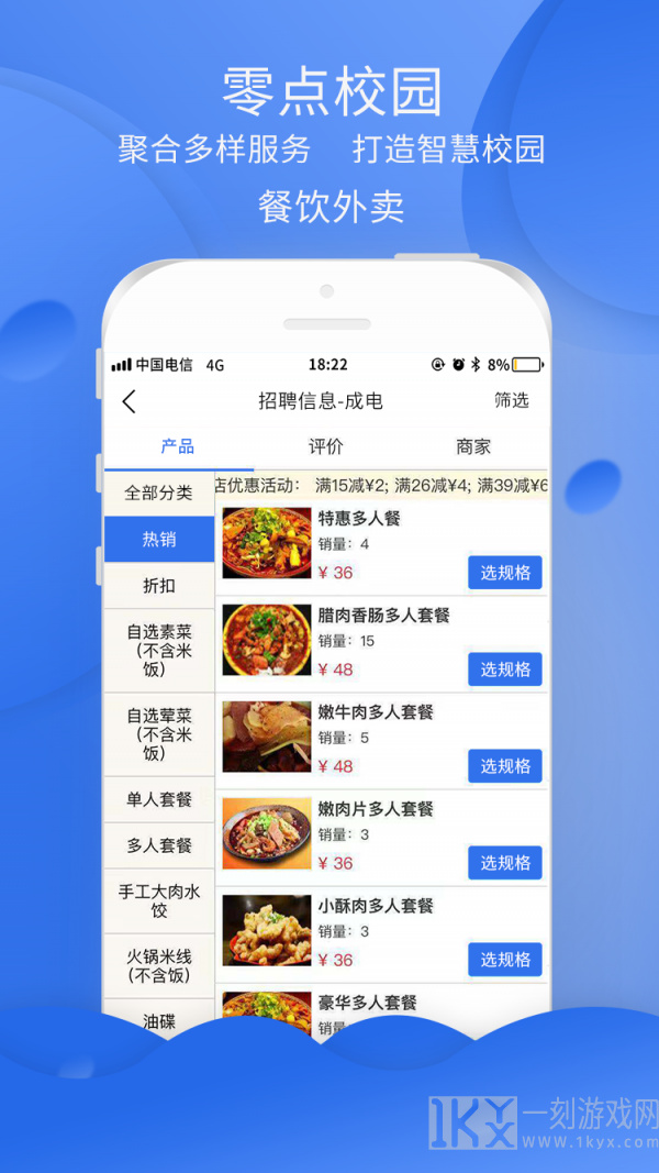4. 线上点餐:集合了校园周边的大量餐饮店铺,用户可以在线浏览菜单、下单点餐,并享受配送服务。