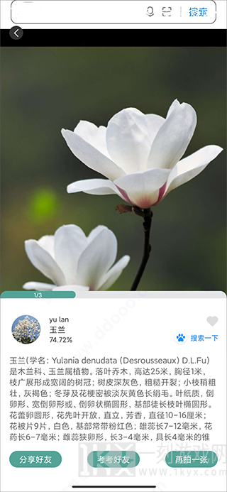 3.功能全面:除了识花功能外,该软件还支持对其他物品的识别,如动物、地标、汽车和红酒,方便用户满足多方面的需求。