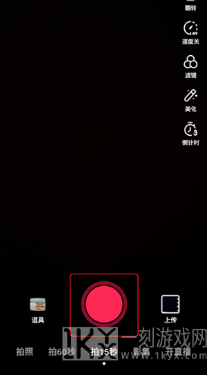1、运行抖音软件,点击首页中的“+”标志,进入视频录制界面;